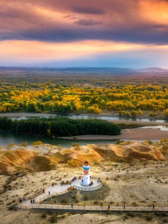 的兩種地貌巧妙的融合在壹起,構(gòu)成了壹幅渾然天成的別樣景致,在俄羅斯風(fēng)情小鎮(zhèn)布爾津稍作休息后乘車(chē)前往北屯。