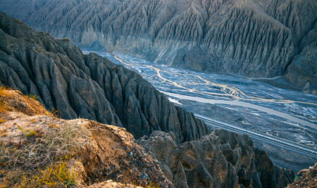 14:30-17:00抵達【獨山子大峽谷】進行游覽,冬天的獨山子大峽谷更像是壹幅巨型水墨畫。從空中看,下沈于地平線之下,宛若壹條深水走廊。與我之前去過的在地上的峽谷不同,獨山子大峽谷從上向下看,是需要壹些勇氣的!在這里不僅可以欣賞到自然奇跡之不可思議,黑色的流水沖擊泥沙的痕跡被保留了下來,峽谷兩側(cè)灰黑色陡峭崖壁上密布的樹狀溝壑和肌理,寬闊而深奧,兩岸無數(shù)被雕刻的形狀,此番此景不由得讓人感嘆,沿河道向上望,貌似沒有盡頭,那是通往何方的呢。