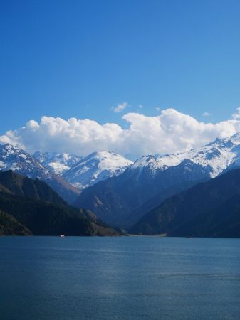 新疆天山天池位于新疆昌吉回族自治州阜康市境內(nèi),博格達(dá)峰北坡山腰,距烏魯木齊市97公里,湖面海拔1910米,南北長3.5公里,東西寬0.8-1.5公里,最深處105米。天山天池是一個(gè)天然高山湖泊,古稱“瑤池”,有“天山明珠”的盛譽(yù)。它以完整的垂直自然景觀帶為主要特征,以遠(yuǎn)古瑤池神話、民俗風(fēng)情為文化內(nèi)涵