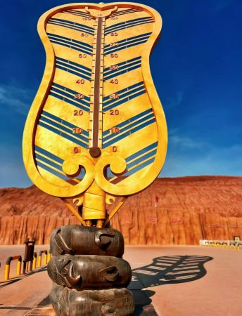 火焰山位于新疆維吾爾自治區(qū)吐魯番市高昌區(qū)312國道,是國家AAAA級景區(qū)和國家地質(zhì)公園,于2018年4月13日入圍“神奇西北100景”?;鹧嫔綄俚湫偷拇箨懶愿珊祷哪畾夂?,是北緯42°在線世界唯一的熱火爐,具有日照長、氣溫高、晝夜溫差大、降水少、風(fēng)力強(qiáng)等特點(diǎn)。全年平均氣溫為14℃,夏季平均氣溫在30℃