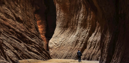 14:30-18:00后前往天山大峽谷參觀,沿獨(dú)庫公路南段行駛,沿途是寸草不生的鹽堿地,還有壹段雅丹地貌土丘,遠(yuǎn)望去壹片赭紅色山體就到了天山神秘大峽谷;進(jìn)入景區(qū)后巖壁如同被火焰燒得通紅,蔚為壯觀,谷口開闊,低谷平坦,谷內(nèi)曲徑通幽,別有洞天,兩側(cè)峭壁直插云天,配合陽光角度的移動光影萬千,頗具異域風(fēng)情;后前往庫車