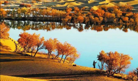 15:30-18:30下午抵達(dá)澤普胡楊林;澤普金湖楊景區(qū)占地面積有4萬畝,其中天然胡楊林面積達(dá)2萬畝。景區(qū)以廣袤的天然胡楊林與開闊的葉爾羌河及河兩岸平坦、荒蕪的戈壁灘形成獨(dú)特的自然風(fēng)貌。胡楊、水、綠洲、戈壁四位壹體的自然風(fēng)貌向人們展示了壹幅邊塞畫卷,堪稱塔里木盆地西邊緣不可多得的壹處旅游勝地