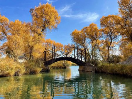 澤普金胡楊國(guó)家森林公園位于新疆喀什地區(qū)澤普縣西側(cè),緊靠葉爾羌河畔,是壹處環(huán)境優(yōu)美的沙漠綠洲。-自然景觀:-胡楊林:澤普金胡楊國(guó)家森林公園擁有上萬(wàn)畝的天然胡楊林,胡楊高大挺拔,形態(tài)各異。秋季時(shí),胡楊葉變成金黃色,與藍(lán)天白云和沙漠相互映襯,形成美麗的景色。-水系:公園內(nèi)有葉爾羌河及其支流環(huán)繞,形成了湖泊